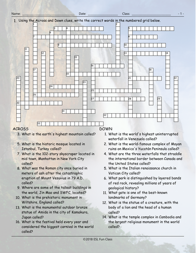 Tourist Attractions Around The World Word Crossword Puzzle Teaching Resources